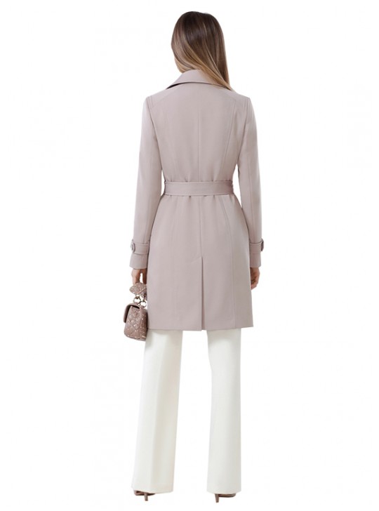 Двубортный классический плащ-тренч полуприлегающего силуэта с четкими линиями кроя, выполненный из практичной ткани нежно-голубого цвета. В модели соблюдены все традиционные атрибуты тренчкота- паты на рукавах, кокетки. Классический английский воротник, карманы-листочки, удобная застежка на пуговицы. Пояс в комплекте. Длина по спине: 90 см.