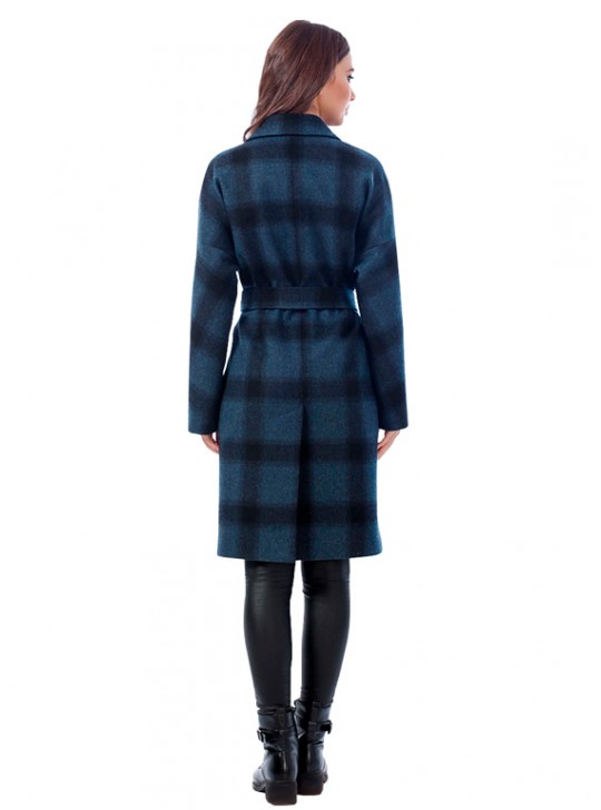 Элегантное женское пальто прямого силуэта на поясе из теплой шерстяной ткани в "клетку" в спокойных и современных серо-черных тонах. Удобная застежка на пришивных кнопках. Рукава реглан, английский воротник. В комплекте пояс из основной ткани с оригинальной металлической фурнитурой. Длина по спине: 110 см.