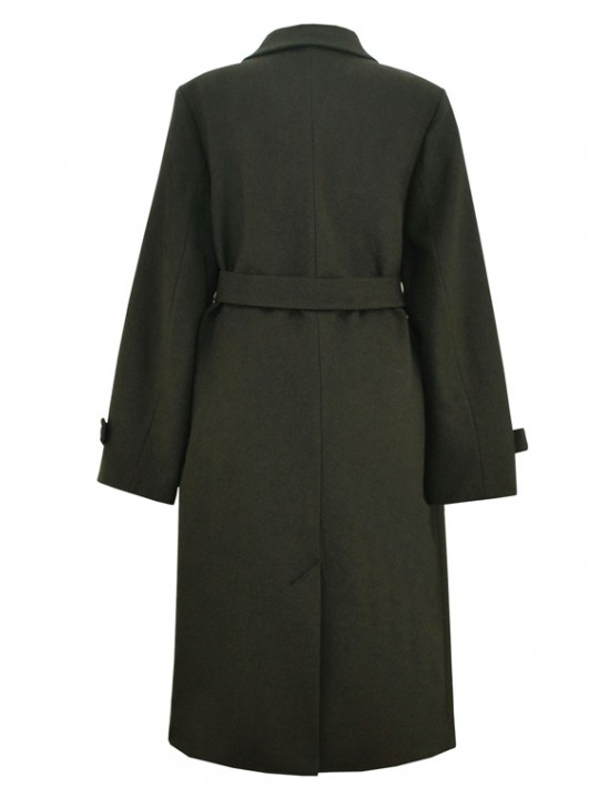 Стильное женское демисезонное удлиненное пальто прямого силуэта, выполненное из мягкой буклированной ткани цвета черный меланж. Английский воротник. Крупные пуговицы. Карманы втачные с клапанами. С поясом. По задней планке шлица. Длина по спине: 115 см.